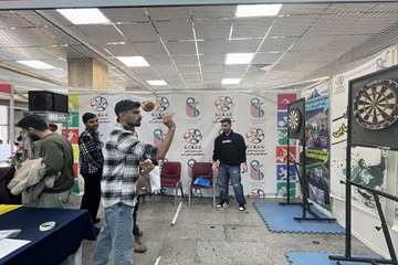 در غرفه تربیت بدنی با برگزاری مسابقات دارت و فوتبال رومیزی لحظات شادی را برای دانشجویان نو ورود رقم زد و جوایزی به رسم یادبود به دانشجویان اهدا شد.