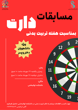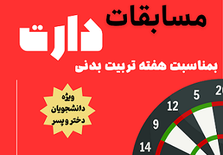 مدیریت تربیت بدنی به مناسبت گرامیداشت هفته تربیت بدنی و ورزش و با هدف ترویج سبک زندگی سالم مسابقات ورزشی دارت را ویژه دانشجویان دختر و پسر دانشکده برگزار می کند.